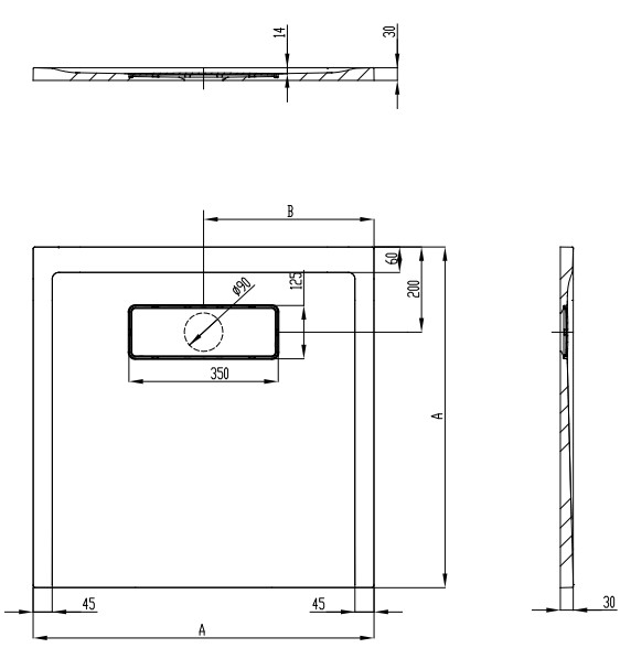 HOESCH Sola Brodzik z odlewu mineralnego 1000x1000x15 biały 4351xA.010