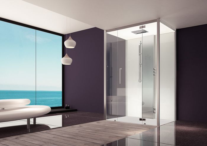HOESCH SensePerience Kabina parowa kwadratowa przyścienna z brodzikiem z odlewu mineralnego 1000x1000 biała 533111xA.010550