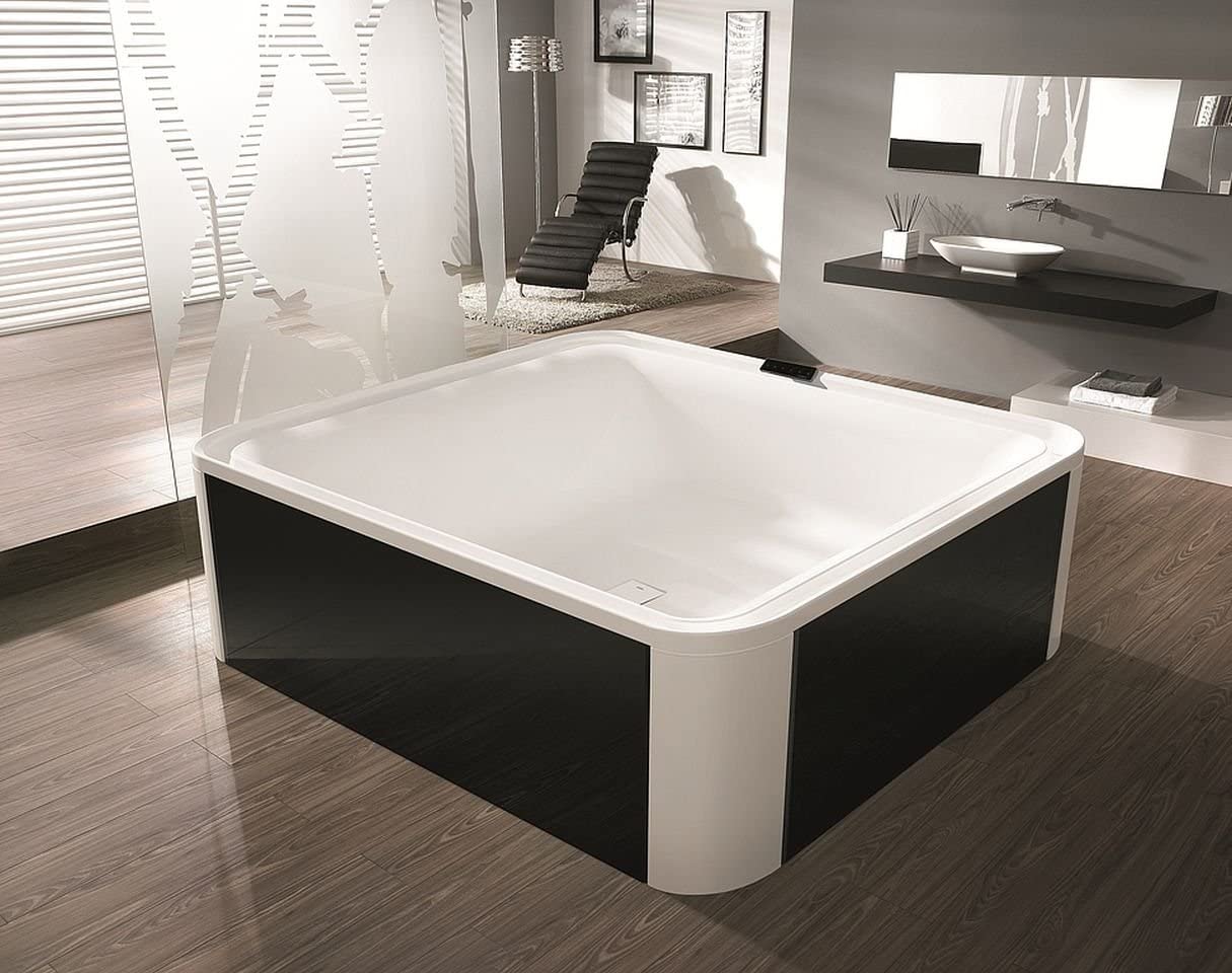 HOESCH Ergo+ Wanna akrylowa kwadratowa wolnostojąca z obudową szklaną w kolorze czarnym z dedykowanym systemem hydromasażu 207,5x195 cm biały/czarny 6444S.010305552