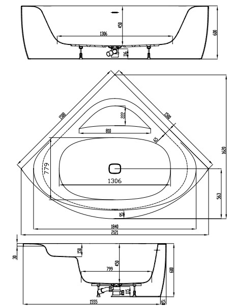 HOESCH iSensi Wanna akrylowa symetryczna typu monoblock z obudową, z przelewem z napełnieniem z dedykowanym systemem hydromasażu powietrznego 150x150 cm chrom 3857i