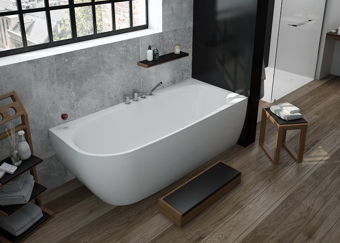 HOESCH iSensi Wanna akrylowa przyścienna/narożna prawa typu monoblock z obudową, z przelewem z napełnieniem z dedykowanym systemem hydromasażu powietrznego 180x80 cm chrom 3865i