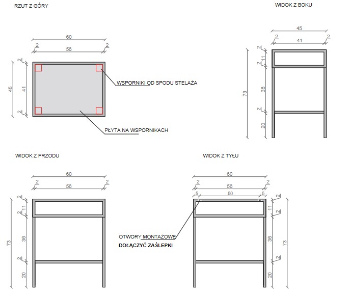 Stelaż pod umywalkę ST600-06 od Cristalstone dedykowany jest dla produktów z kolekcji Linea Ideal oraz Linea Simpla, które dostępne są w wersji z odpływem liniowym i tradycyjnym oraz standardowym i cienkim rantem.