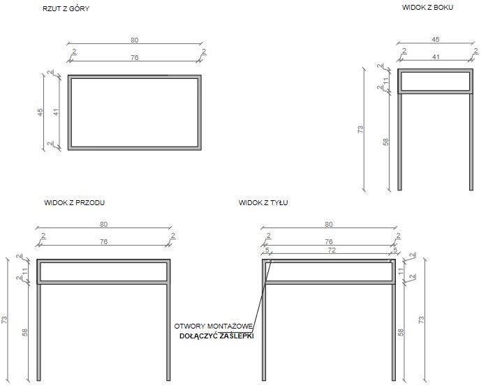 • Kształt: Prostokątny