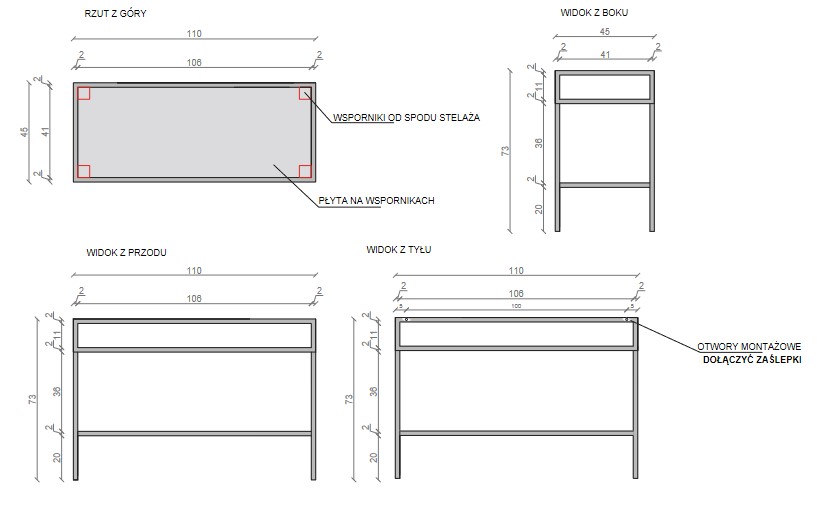 Niezwykle praktyczny stelaż wyposażony jest w dodatkowy, poziomy profil oraz pojemną półkę, na której ulokujesz wszystkie swoje ulubione kosmetyki i niezbędne środki czystości, a w razie potrzeby - także dodatkowe ręczniki.
