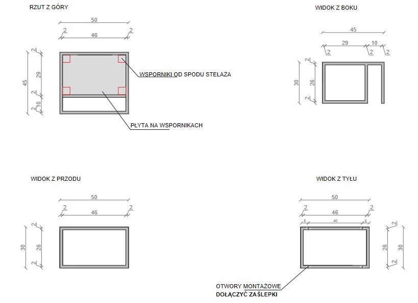 Cristalstone Stelaż pod umywalkę wiszący mały 50 x 45 x 30 cm czarny mat ST1200-09