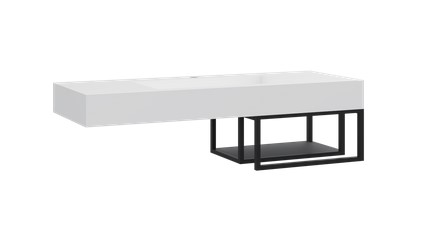 Model konsoli podumywalkowej wykończony jest w modnym, czarnym kolorze i matowej strukturze. Konsola do łazienki wyposażona jest w półeczkę, na której z powodzeniem ułożysz swoje ulubione kosmetyki czy niezbędne środki czystości.