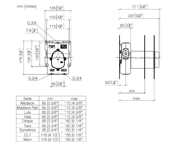 2x przyłącze 3/4" IG (ciepła/zimna), DN 15