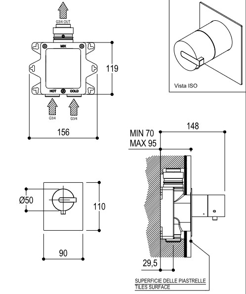 Ritmonio DOT316 Round Bateria wannowo-prysznicowa termostatyczna podtynkowa stal nierdzewna PR50HC101INOX