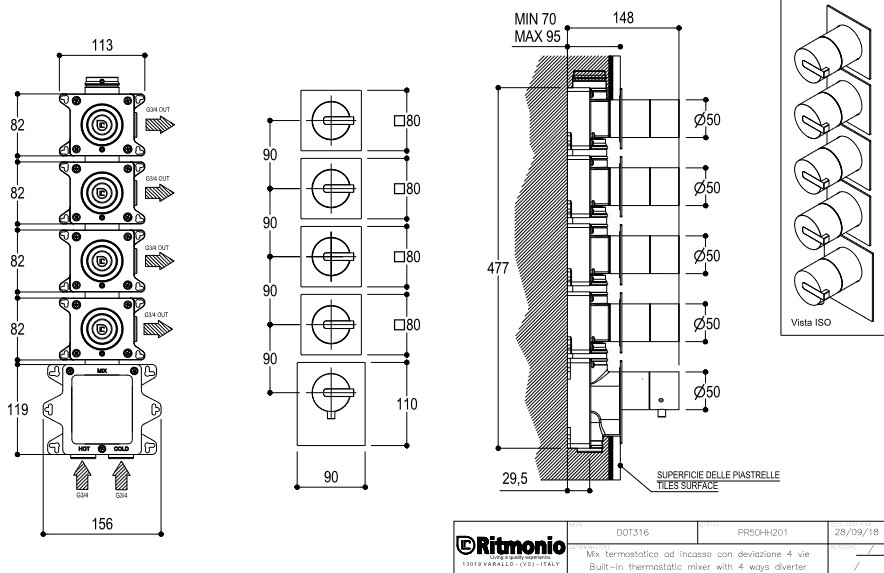 Ritmonio DOT316 Round Bateria wannowo-prysznicowa termostatyczna podtynkowa stal nierdzewna PR50HJ201INOX