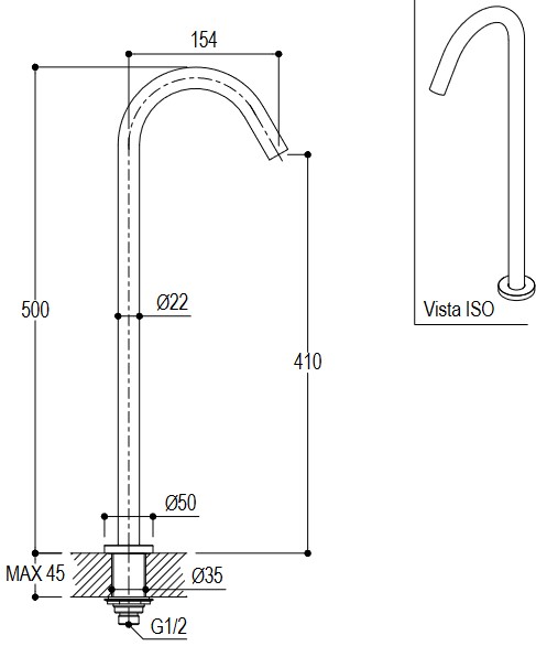 Ritmonio Wylewka obrotowa 360° do umywalki stal nierdzewna E0BA0108CH2INOX
