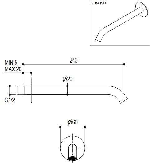 Ritmonio DOT316 Round Wylewka ścienna do umywalki stal nierdzewna PR50CA207INOX