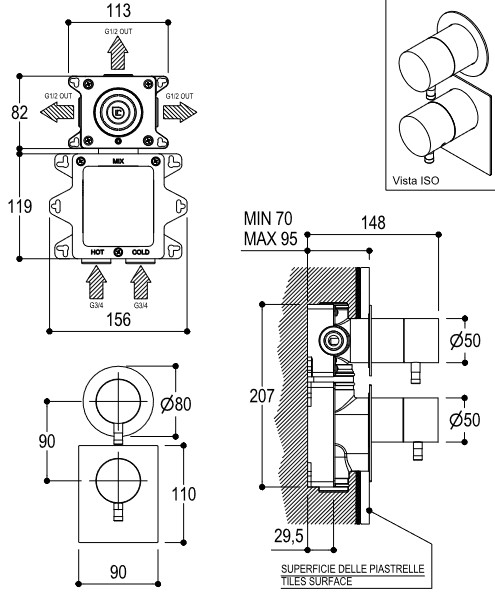 Ritmonio Bateria wannowo-prysznicowa termostatyczna podtynkowa stal nierdzewna E0BA0179ESPINOX