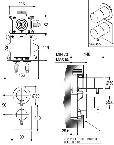 Ritmonio Bateria wannowo-prysznicowa termostatyczna podtynkowa stal nierdzewna E0BA0178ESPINOX