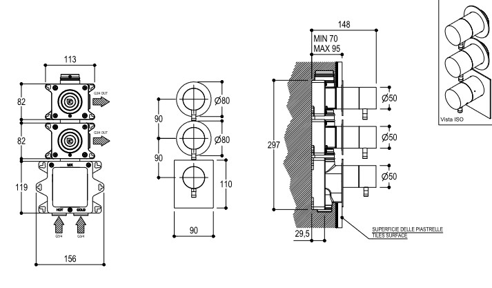 Ritmonio Bateria wannowo-prysznicowa termostatyczna podtynkowa stal nierdzewna E0BA0184ESPINOX