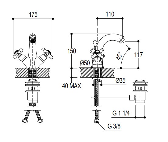 Ritmonio Ritro Bateria umywalkowa 1-otworowa chrom PR42034CRL