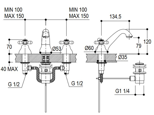 Ritmonio Ritro Bateria umywalkowa 3-otworowa chrom PR42012CRL