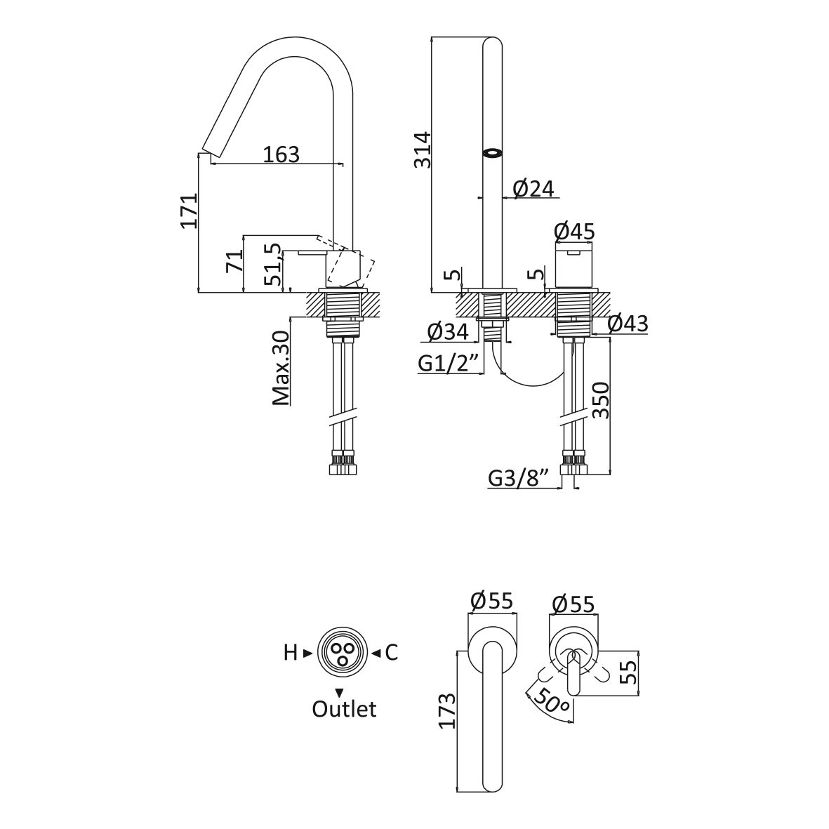----Bruma Leaf2 Bateria umywalkowa 2-otworowa bez korka Pure White 1672202PW