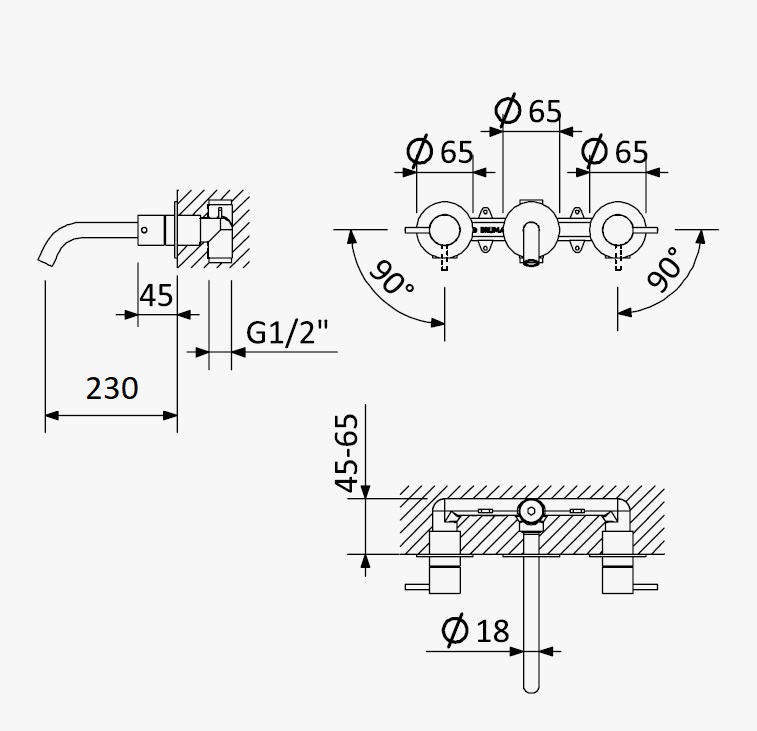 ----Bruma Leaf2 Bateria umywalkowa podtynkowa 230 mm Pure White 1672402PW