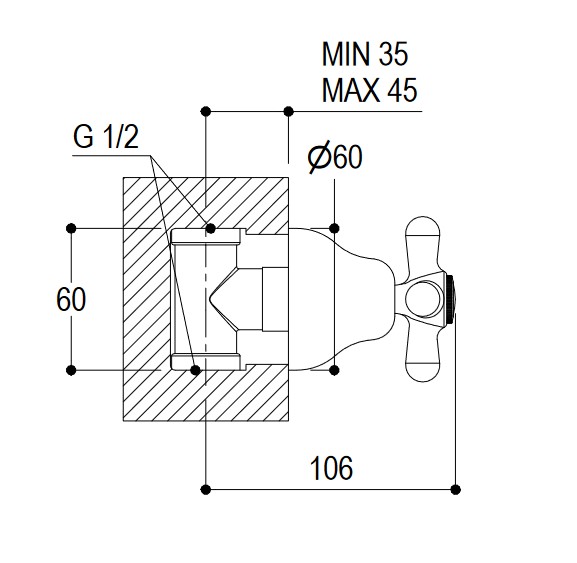 Ritmonio Zawór odcinający ścienny chrom PR42060CRL