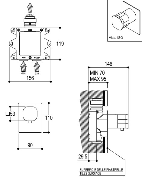Ritmonio Taormina Bateria wannowo-prysznicowa termostatyczna podtynkowa chrom PR35HC101CRL