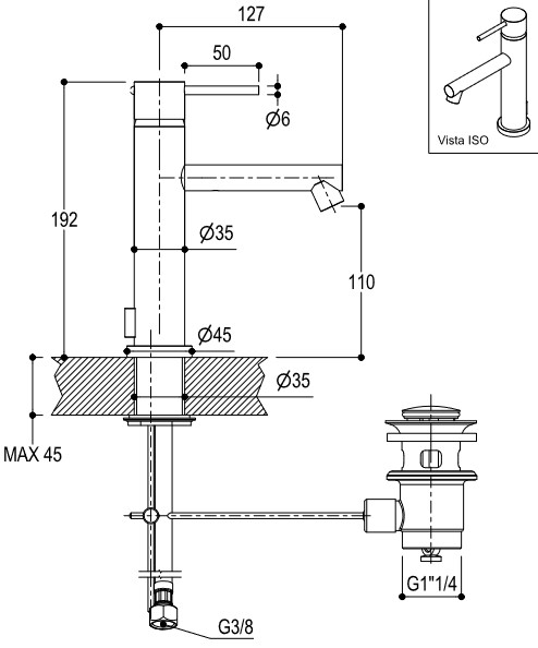 Ritmonio Diametro35 Bateria umywalkowa 1-otworowa chrom E0BA0121SCRL