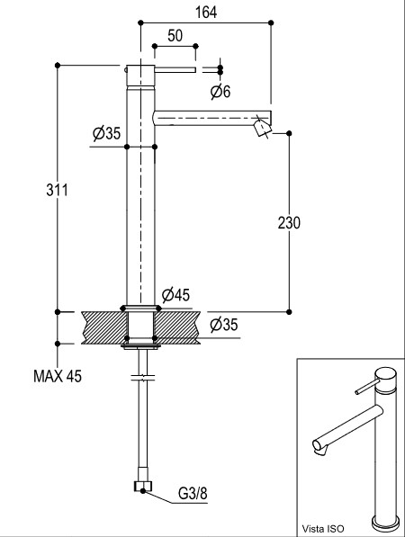 Ritmonio Diametro35 Bateria umywalkowa 1-otworowa wysoka chrom E0BA0129SCRL