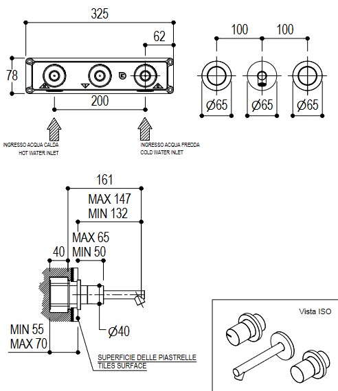 Ritmonio Diametro35 Bateria umywalkowa ścienna podtynkowa chrom E0BA0203SPCRL