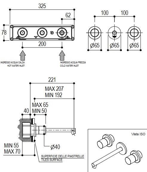 Ritmonio Diametro35 Bateria umywalkowa ścienna podtynkowa chrom E0BA0204SPCRL