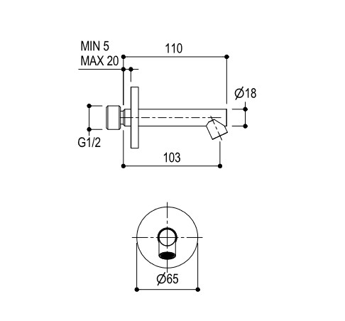 Ritmonio Diametro35 Wylewka umywalkowa ścienna chrom E0BA0157H4CRL