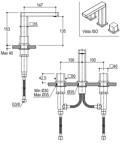 Ritmonio Glitter Bateria umywalkowa 3-otworowa bez korka chrom PR32AE201CRL