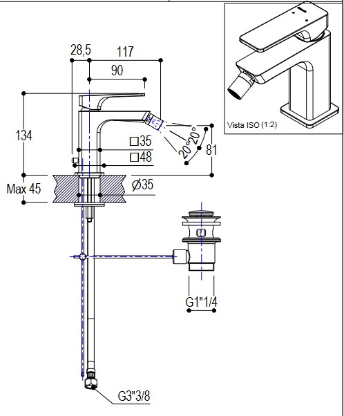 Ritmonio Glitter Bateria bidetowa jednootworowa z korkiem automatycznym chrom PR32BA101CRL