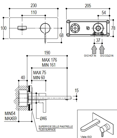 Ritmonio Tie Bateria umywalkowa ścienna podtynkowa chrom PR34AL102CRL