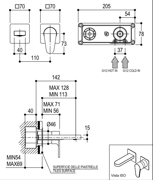 Ritmonio Tip Bateria umywalkowa ścienna podtynkowa chrom PR38AL201CRL