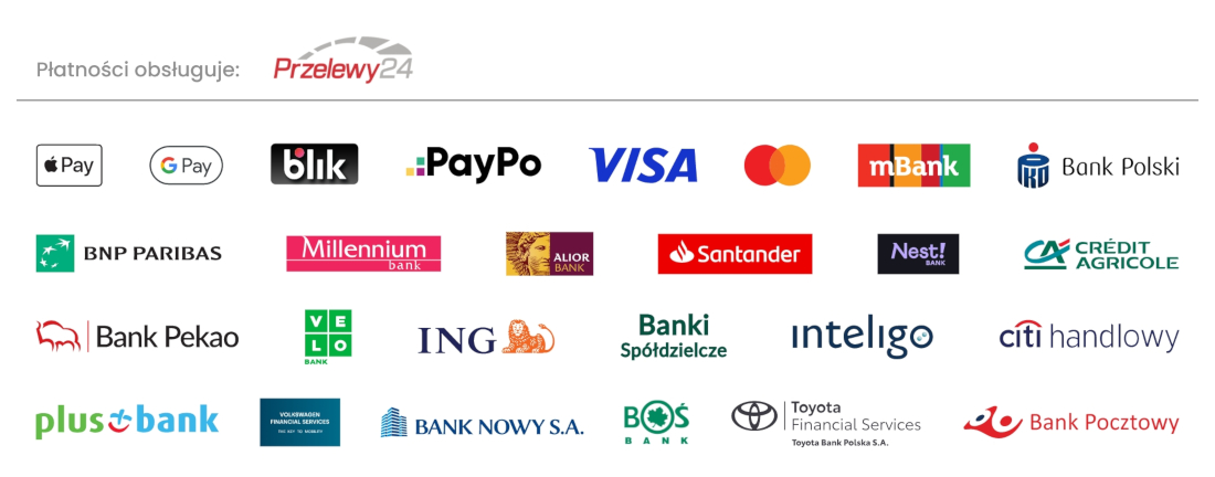 a. przelew bankowy na rachunek bankowy Sprzedawcy (w tym przypadku realizacja Zamówienia rozpoczęta zostanie po przesłaniu Klientowi przez Sprzedawcę potwierdzenia przyjęcia Zamówienia, zaś wysyłka dokonana zostanie niezwłocznie po wpłynięciu środków na rachunek bankowy Sprzedawcy i skompletowaniu Zamówienia);